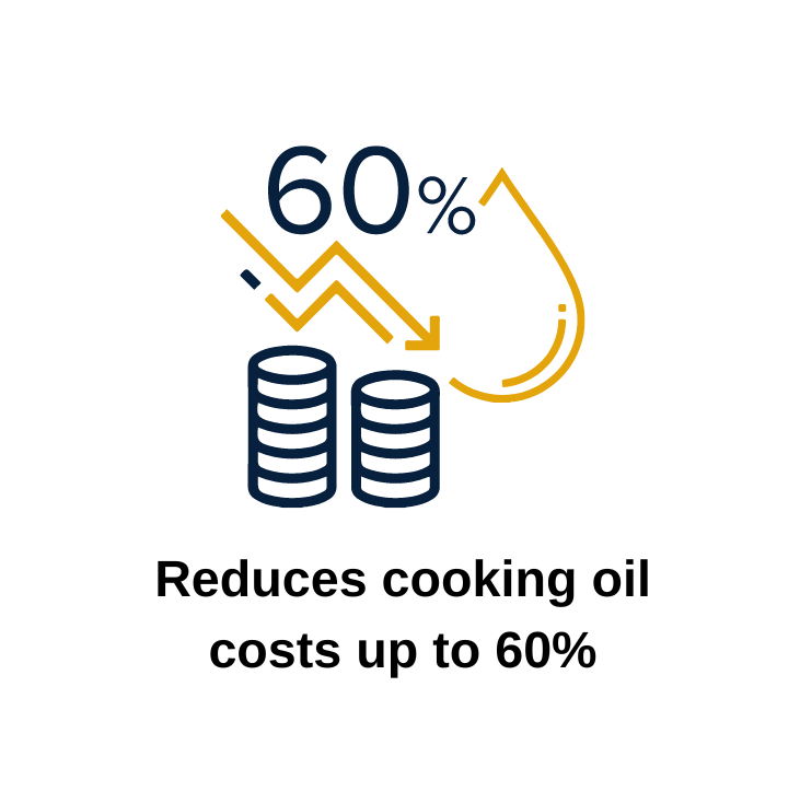 Extends cooking oil life by 50% to 60% and staff productivity.